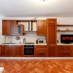 The accommodation offers a living room and a fully equipped kitchen, as well as comforts like an air conditioner.